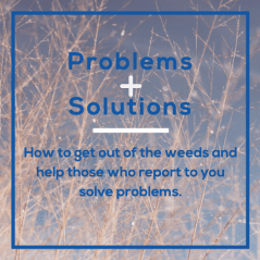 Leaders often struggle with feeling of being overwhelmed by day-to-day issues and “getting stuck in the weeds.” In particular, front-line supervisors or managers often find themselves spending more time than they’d like solving problems that they believe others should be able to solve. The problem is that this dynamic takes time away from planning, being strategic, and focusing on the more important or greater added value work that they could be doing. It is not to say that a manager should not support his or her direct reports and be there to help them solve problems. This issue seems to come up most when leaders feel they continually are dealing with the same issues, solving the same problems for the same people; when they feel others should have the skill and ability to deal with these issues themselves.